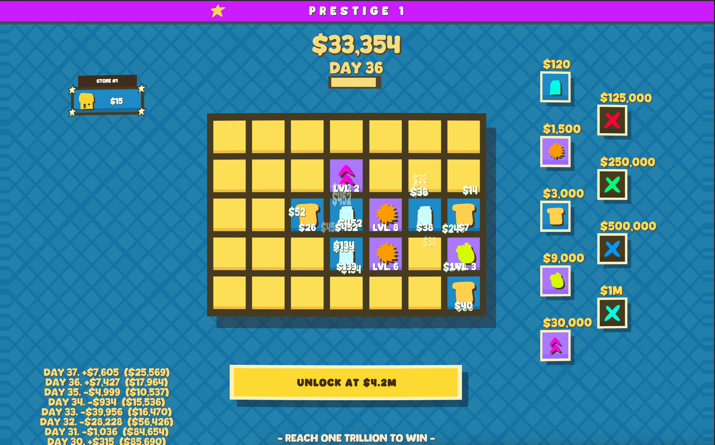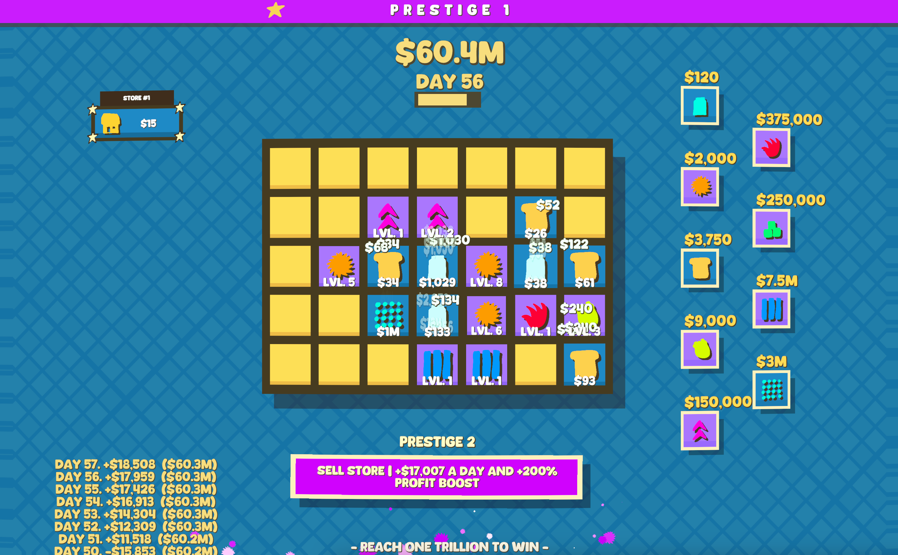 Goal: Reach $1 Trillion as fast as you can by adding items and boosts to the grid.